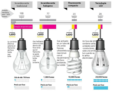 Si estás pensando en cambiar al LED, ten en cuenta que empieza a ser rentable a partir de 6 horas diarias, si no es el caso, ten en cuenta que el LED es del orden de 10 veces más eficiente.
